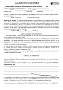 The bride or client must make a deposit or security deposit upon signing the contract to definitively reserve their bridal styling service for the requested date and time. This deposit, equivalent to 40% of the total price agreed upon for their personal bridal services (plus any attendants), will be deducted from the final price. In case of cancellation, this deposit will be refunded provided that we are notified ONE MONTH prior to the wedding date.